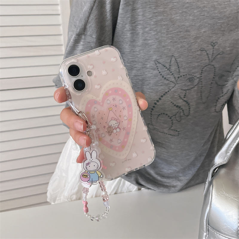 韩系ins可爱少女粉色爱心兔子kt猫苹果15pro手机壳16promax新款iphone17女款14软壳双层带链条全包保护套适用