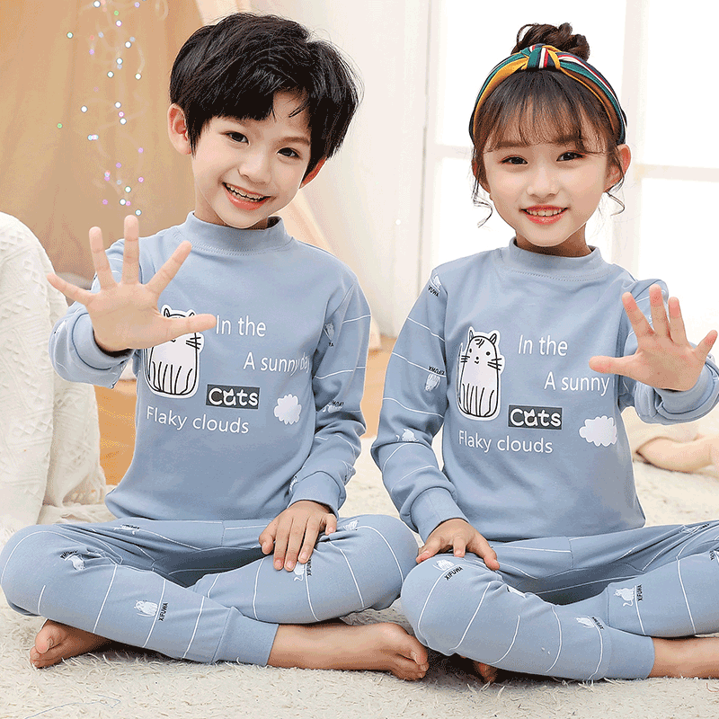 儿童内衣套装纯棉2-13岁男童秋衣秋裤长袖春秋冬女童睡衣中领居家