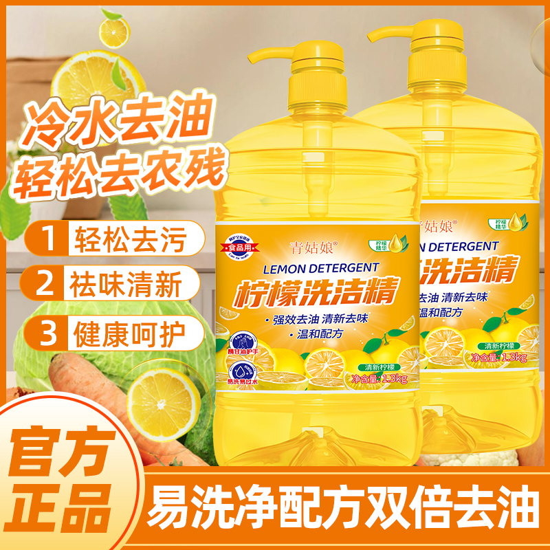 洗洁精柠檬清香冷水轻松去餐具净清洁餐具家庭装家用洗碗厨房果蔬