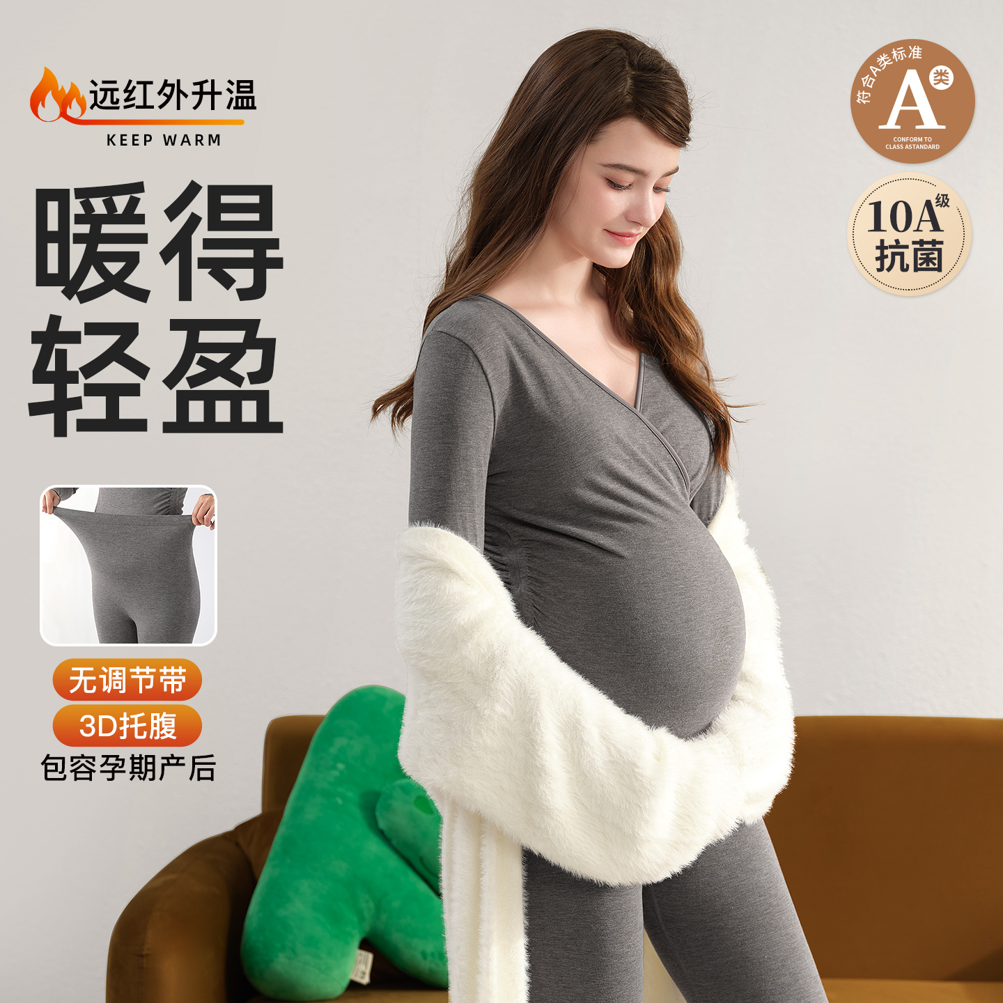 婧麒孕妇秋衣秋裤套装保暖内衣孕期打底产后哺乳喂奶大码月子服冬