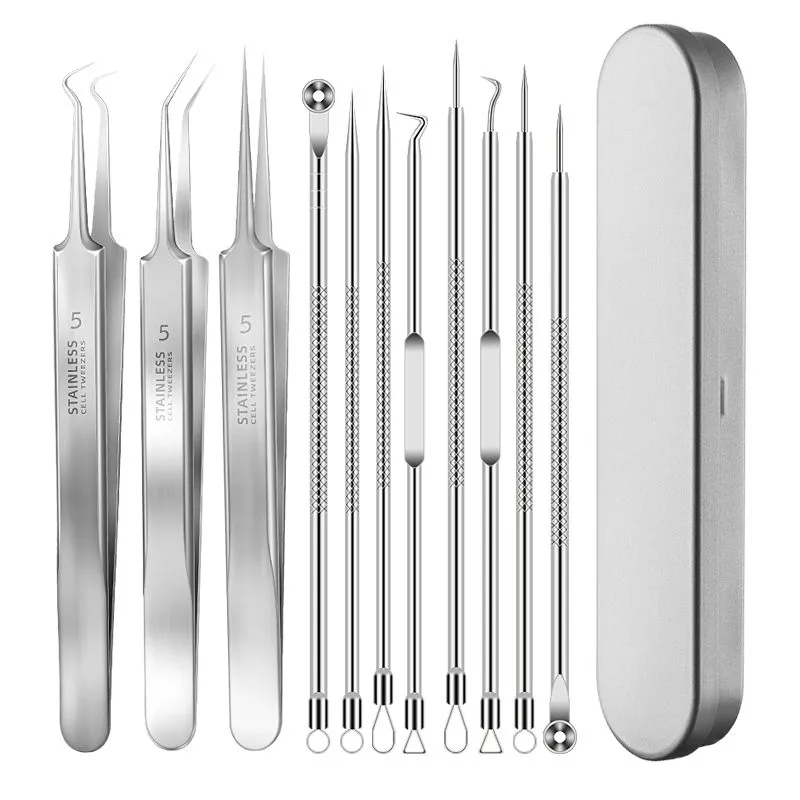美容院专用粉刺针细胞夹黑头夹超细神器高精密镊子挑痘痘套装工具
