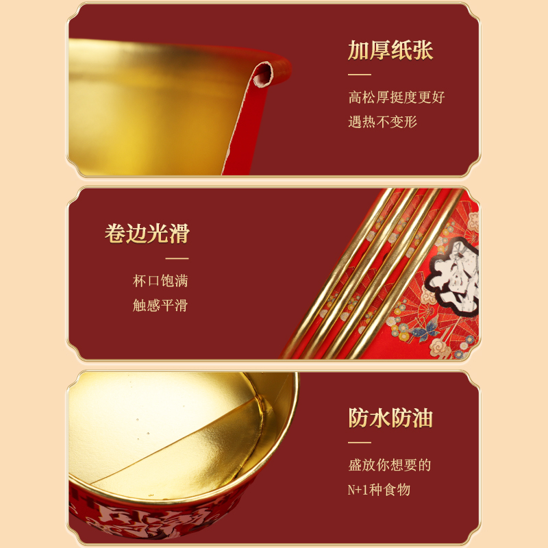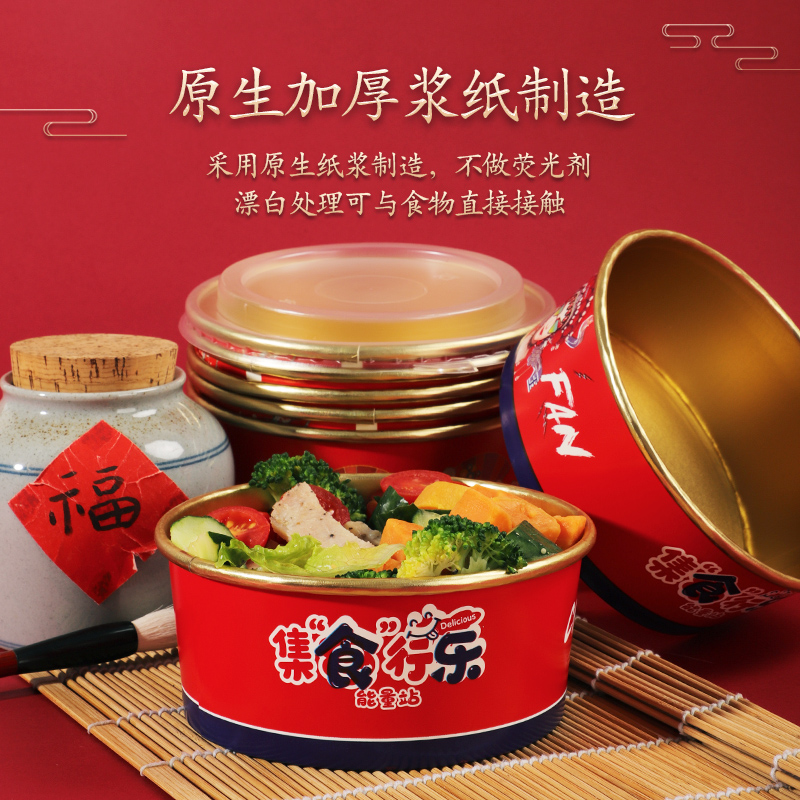 沙拉金箔纸碗一次性带盖食品级水果切中国风饭泡面碗外卖打包餐盒
