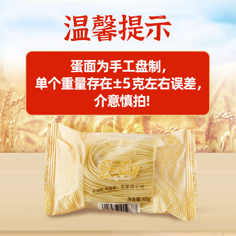 珠江桥牌手工鸡蛋面65g*10个全蛋竹升面细面条独立包装早餐拌面