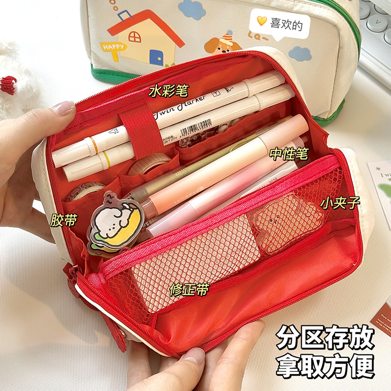 卡通拼色笔袋高颜值ins风糖果笔盒大容量文具盒小众不撞款铅笔袋初高中小学生儿童铅笔盒小众简约文具袋