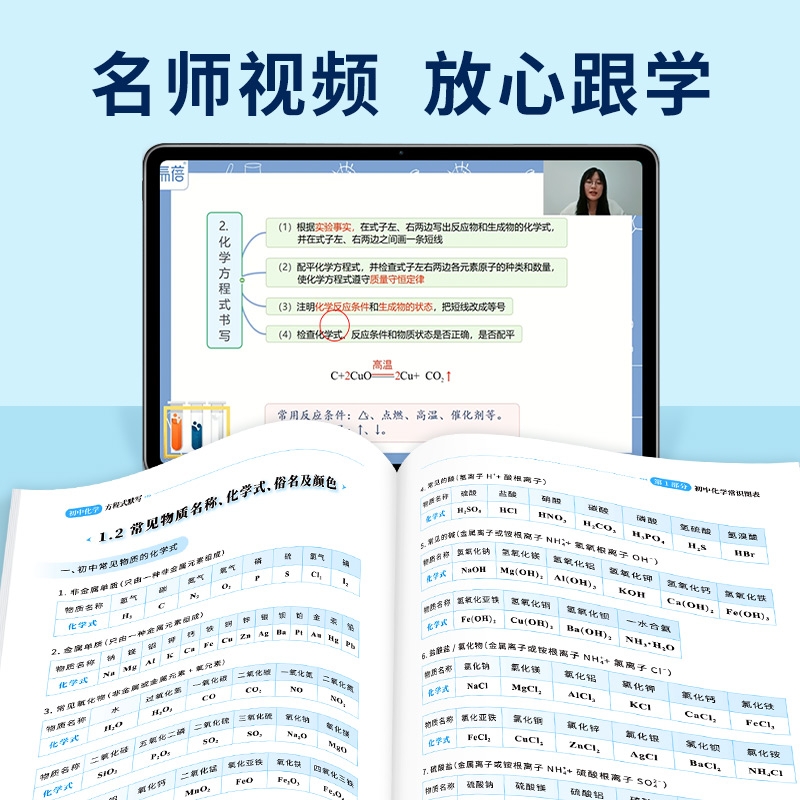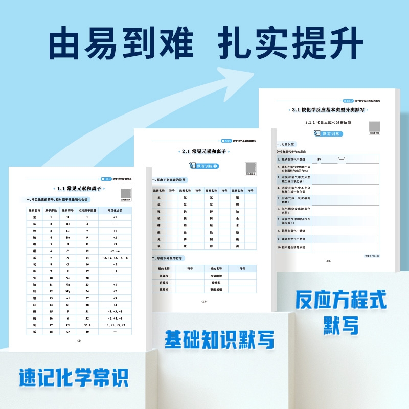 【易蓓】初中化学知识点速记手卡数理化考点及公式方程式默写本七八九年级基础知识大全随身携带初一二三元素检测练习本