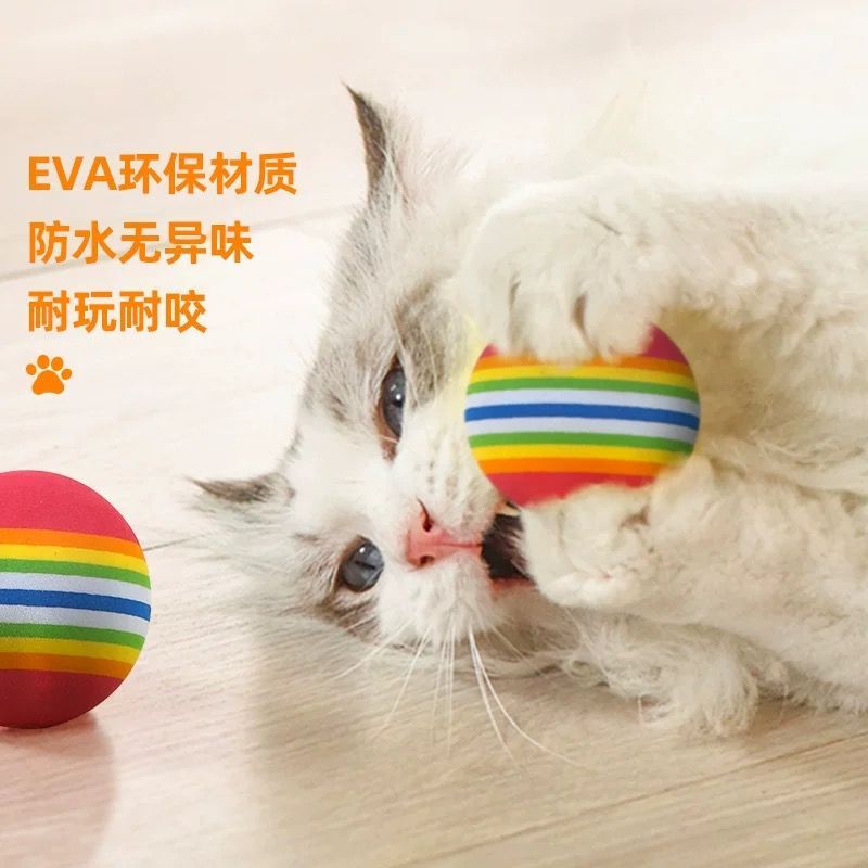 猫咪玩具彩虹球微弹力球逗猫静音球EVA小球宠物自嗨玩具宠物用品