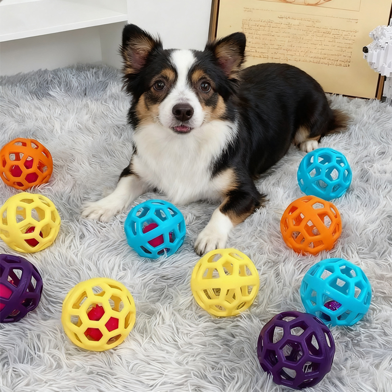 小狗玩具球镂空铃铛球橡胶球消耗体力耐咬磨牙互动宠物玩具球发声