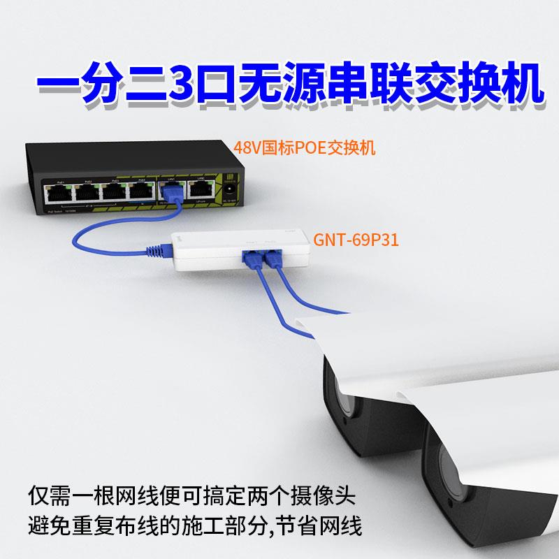 桢田级联宝69P31串联3口POE交换机国标标准POE一分二一分四中继器