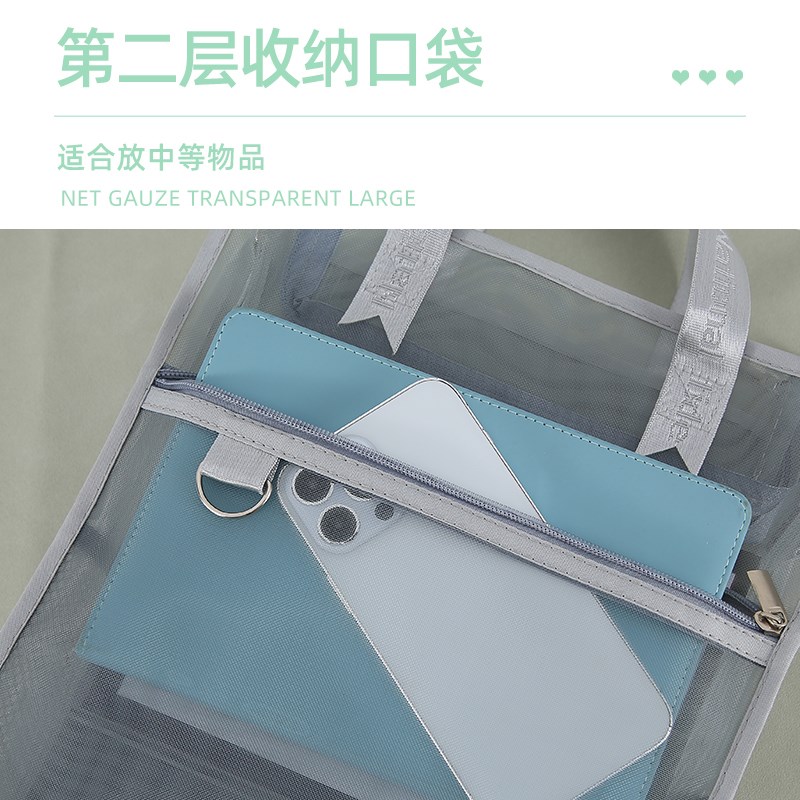 补习袋学生透明网纱手提拎书袋双层加厚拉链文件袋大容量单肩斜挎