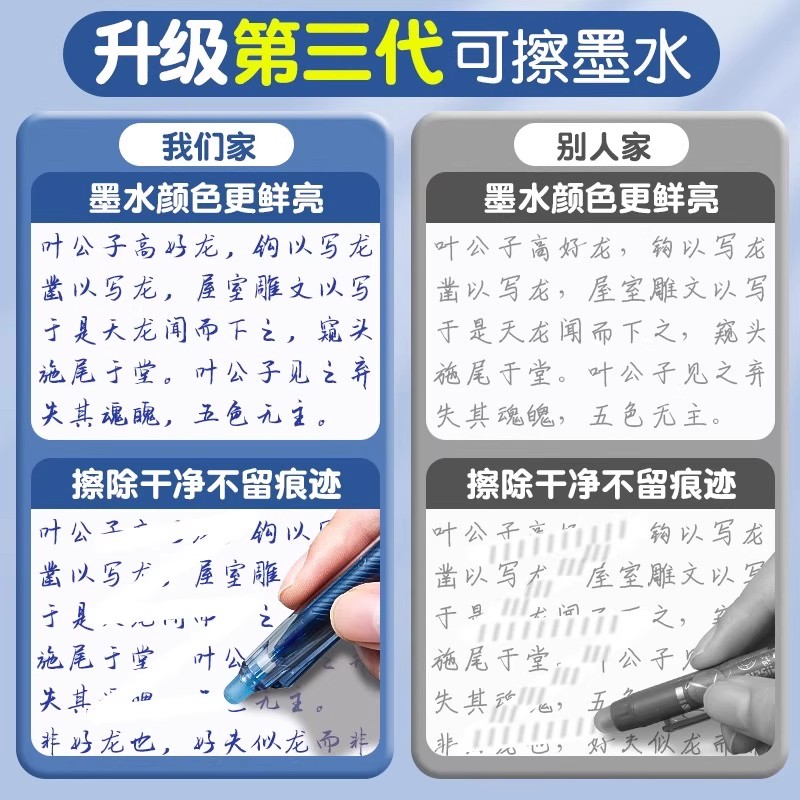 ST头按动式热可擦笔芯晶蓝色3-5年级小学生用黑魔力檫笔芯葫芦头