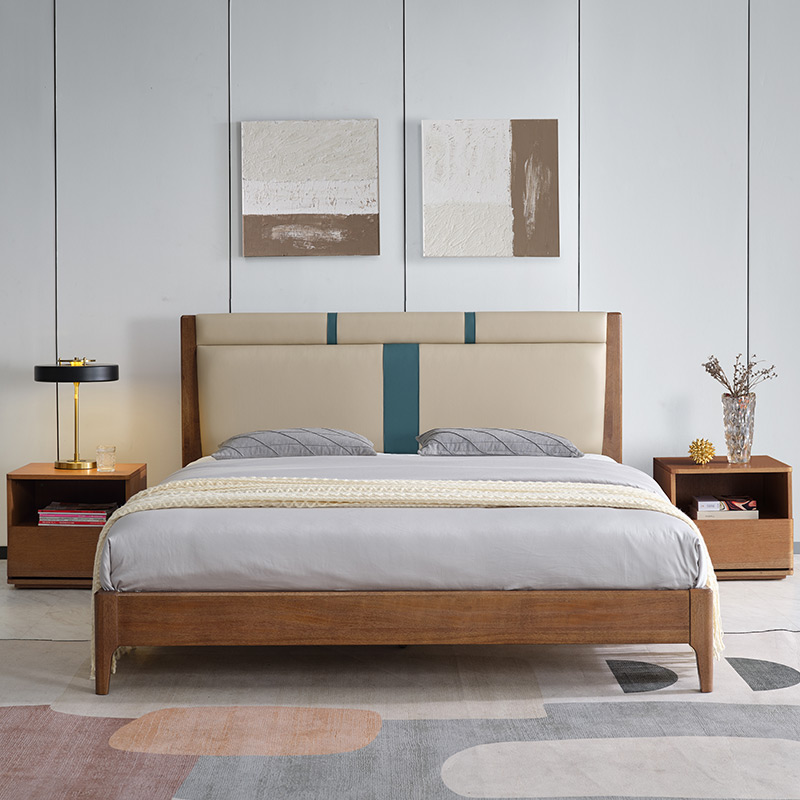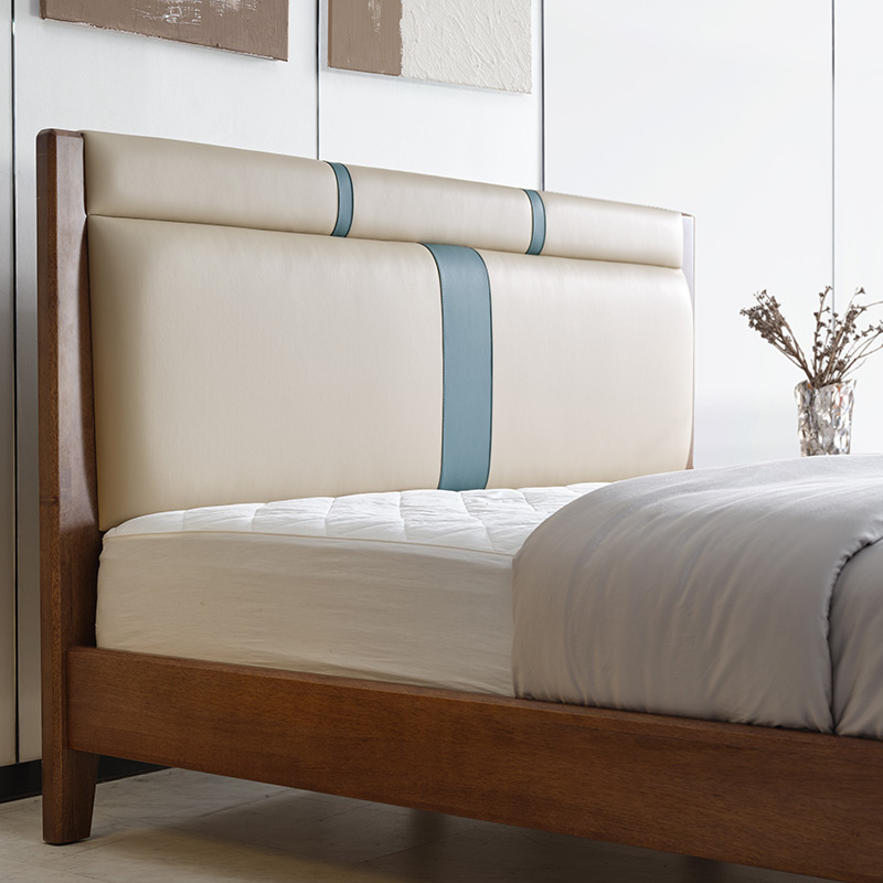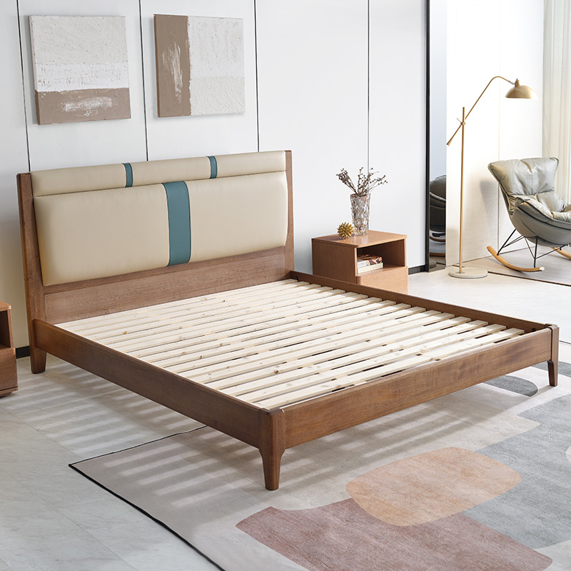 实木床现代简约胡桃木主卧1.5米双人床1.8米主卧轻奢婚房双人床