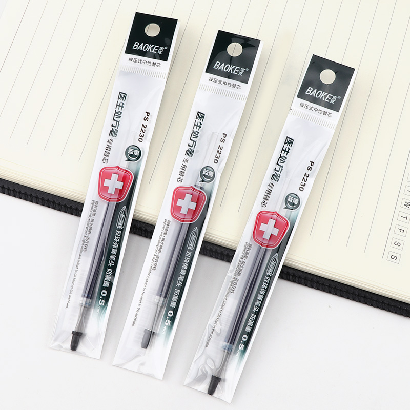 宝克蓝黑色医生处方笔按压式中性笔替芯 签名笔 水笔 笔芯 PS2230笔芯 墨蓝色 0.5mm 20支装