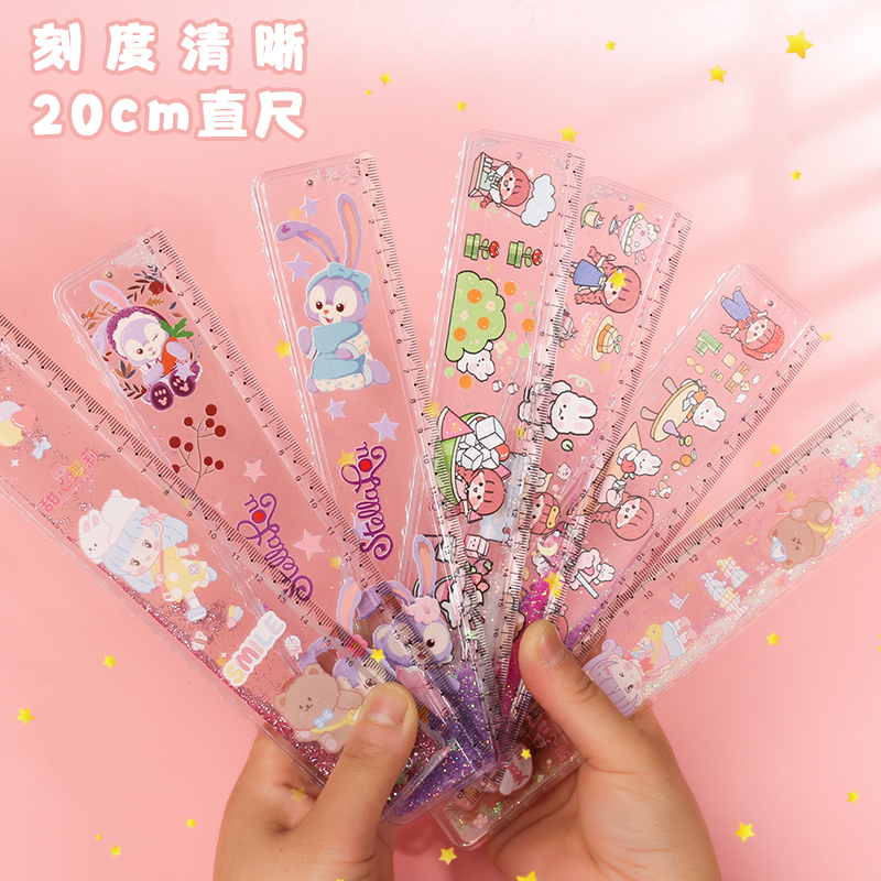 可爱入油流沙尺子格尺小学生专用透明直尺卡通20cm波浪儿童少女心