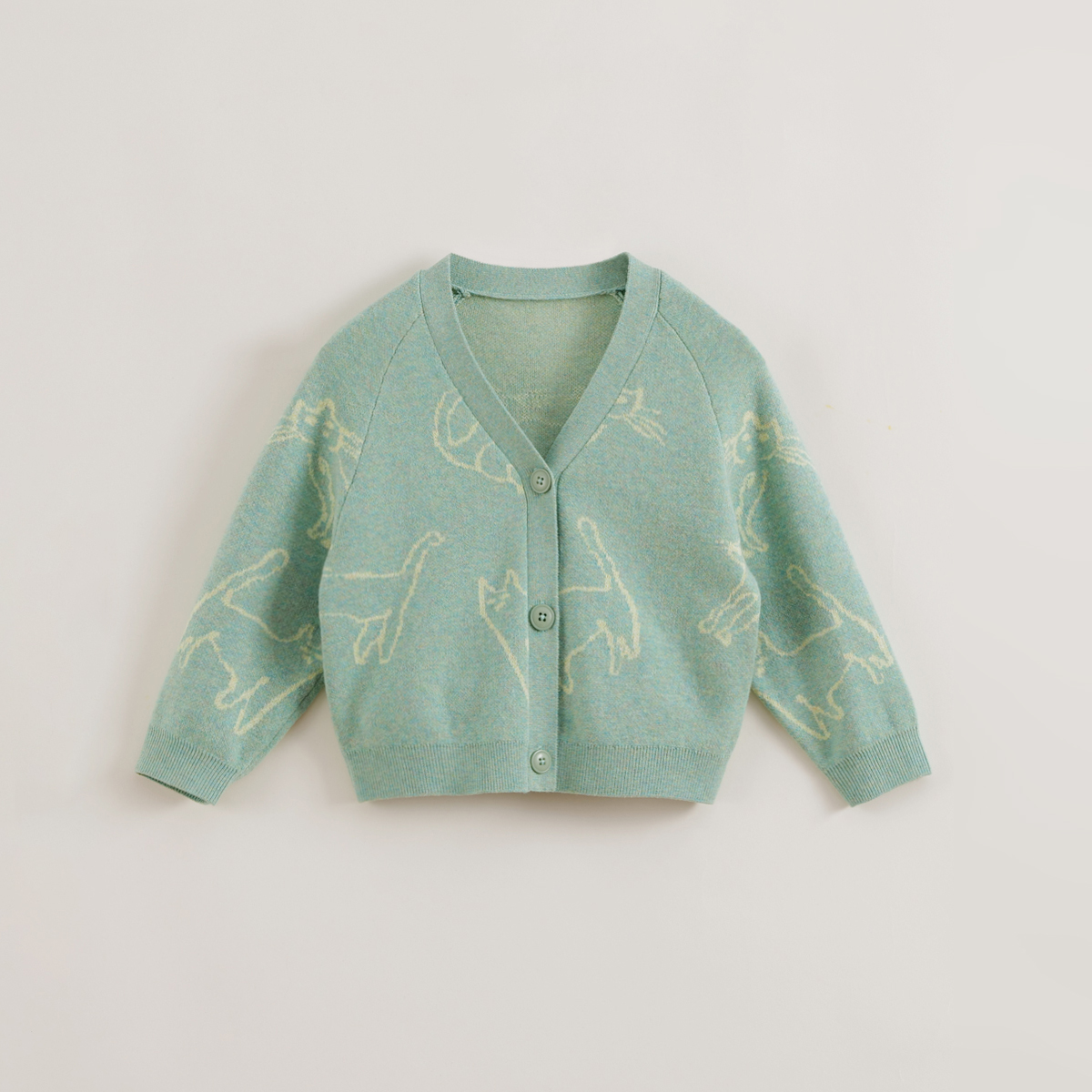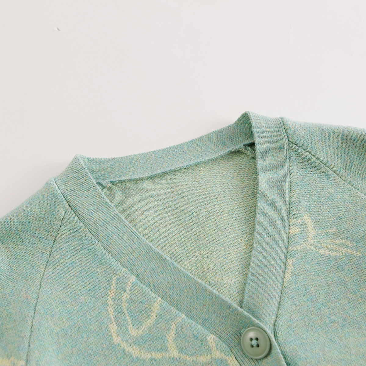 马克珍妮法式优雅 女童涂鸦猫咪V领针织开衫 儿童毛衣秋装230296