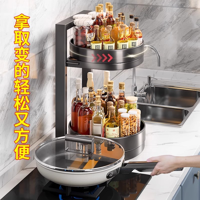旋转调料置物架厨房调料品架子双层家用台面转角佐料调味品收纳架