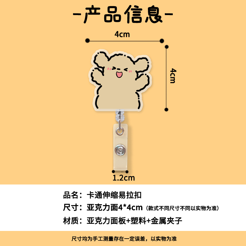 卡通可爱小狗可伸缩易拉扣学生校园医生护士可爱卡套胸牌卡扣夹子挂绳工作证厂牌夹工牌夹子ins风伸缩挂绳夹