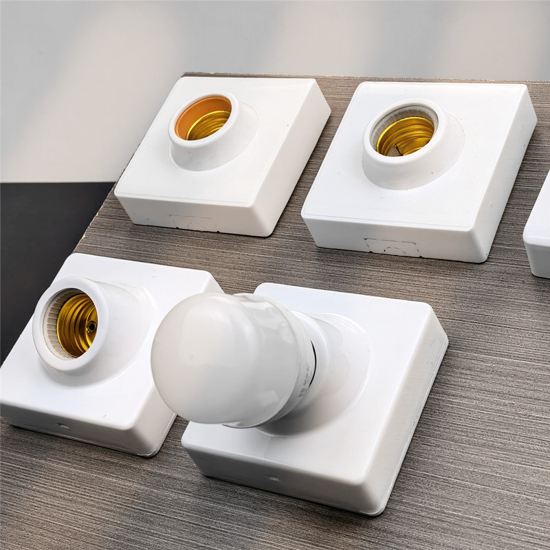 加厚86方形明装螺口灯座墙上灯口耐用灯头斜口楼道通用灯泡底座