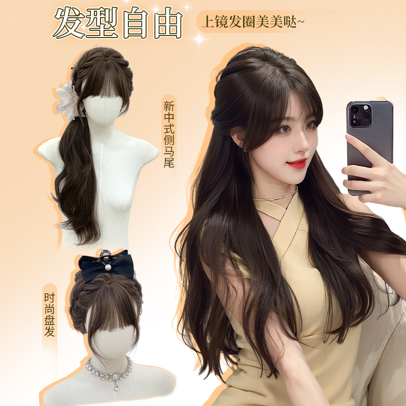 假发全头套女仿真发大波浪空气刘海长卷发自然日常假发套圆脸醒发