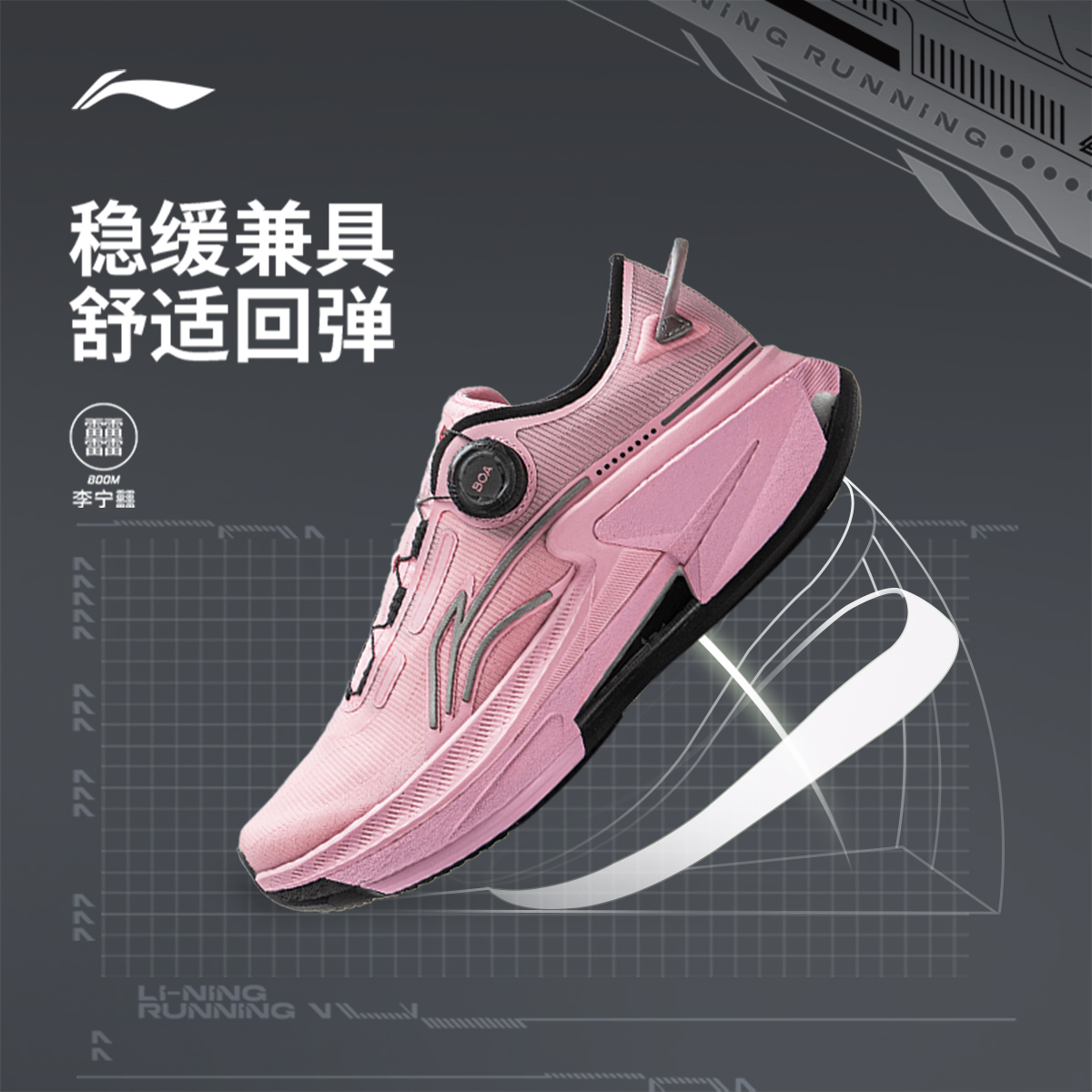 李宁越影Element丨 跑步鞋男支撑保护减震透气网面黑色轻便运动鞋