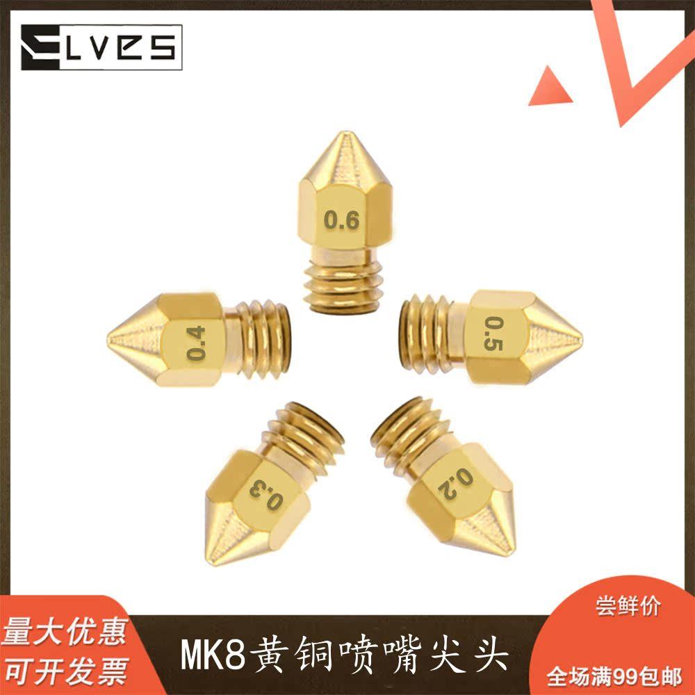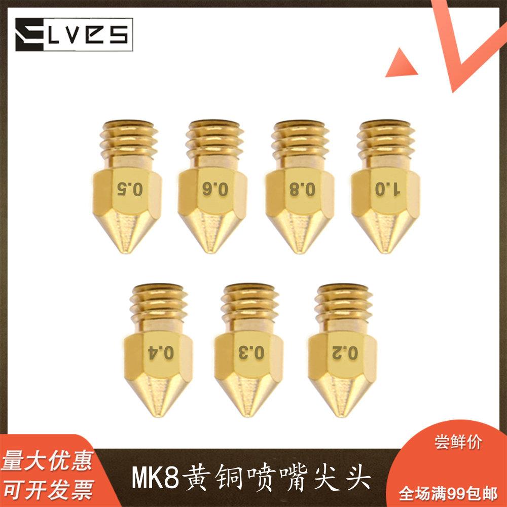 3D打印机配件MK8尖头黄铜喷嘴M6螺纹0.2mm-1.0mm多规格孔径挤出头