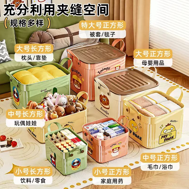 杂物收纳箱零食玩具储物箱整理箱客厅收纳筐桌面收纳盒带盖方形