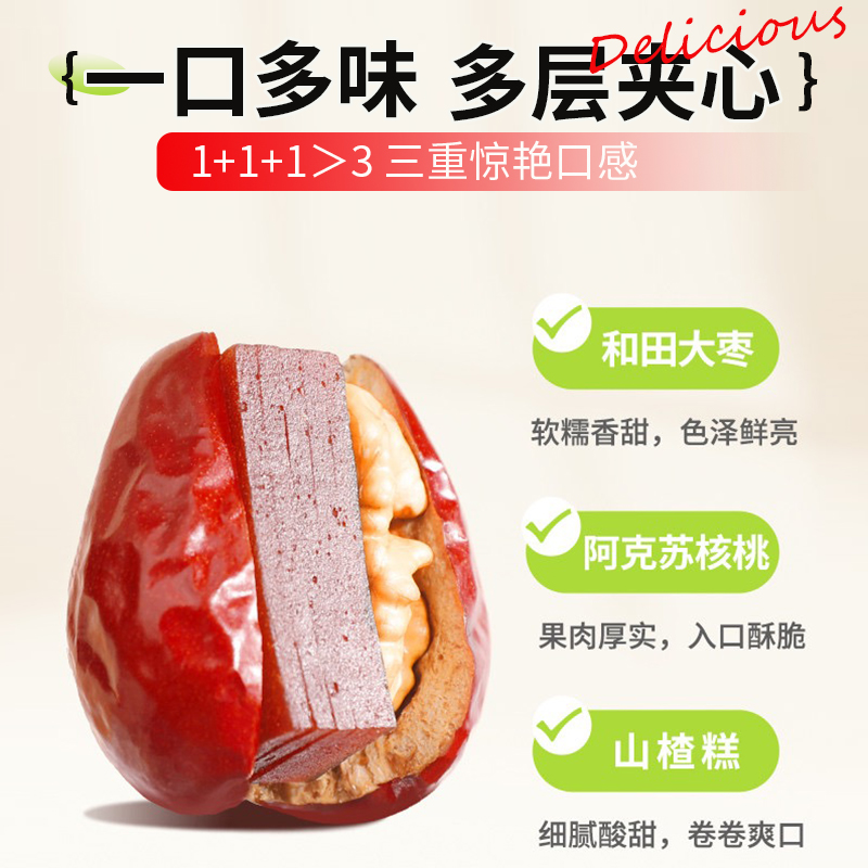 酸甜抱抱果枣夹核桃仁山楂糕新疆大枣红枣官方旗舰店血糯米解馋