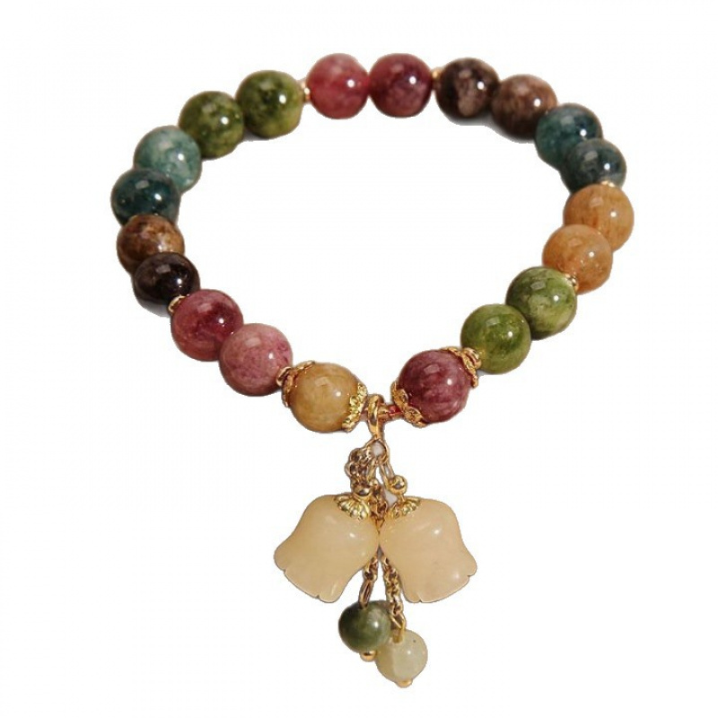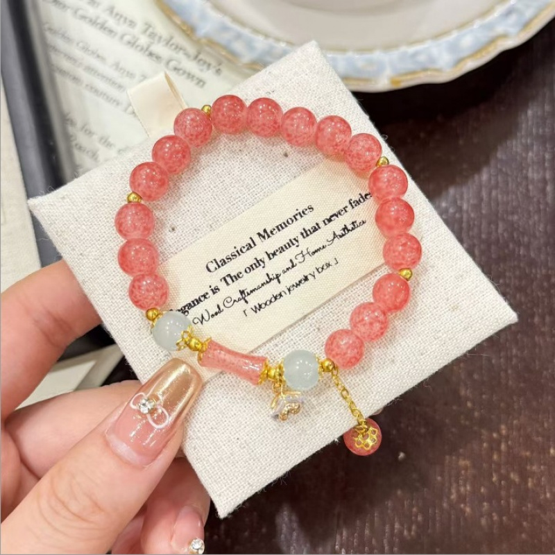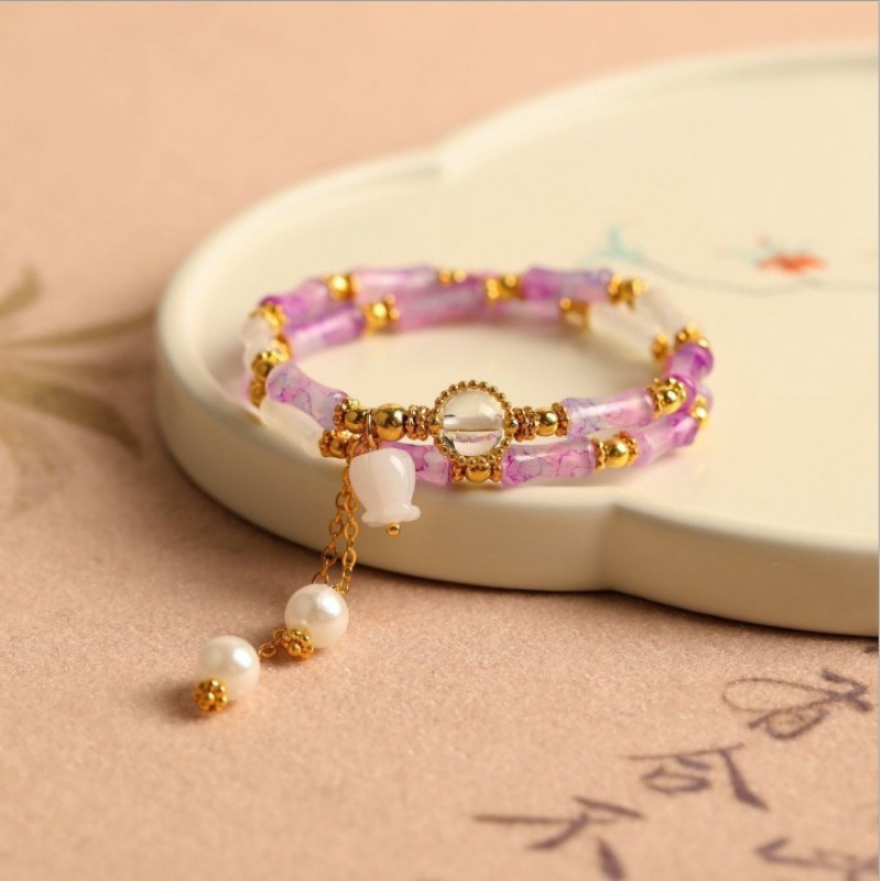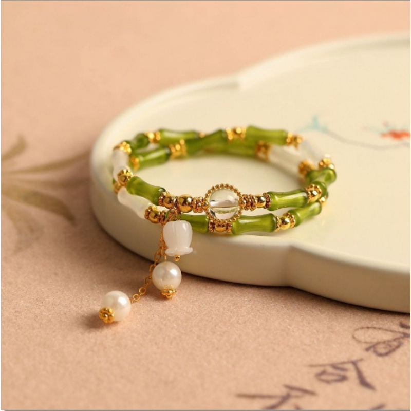 新中式竹节手链小众铃兰花吊坠爆花渐变琉璃高级感摆摊混手串