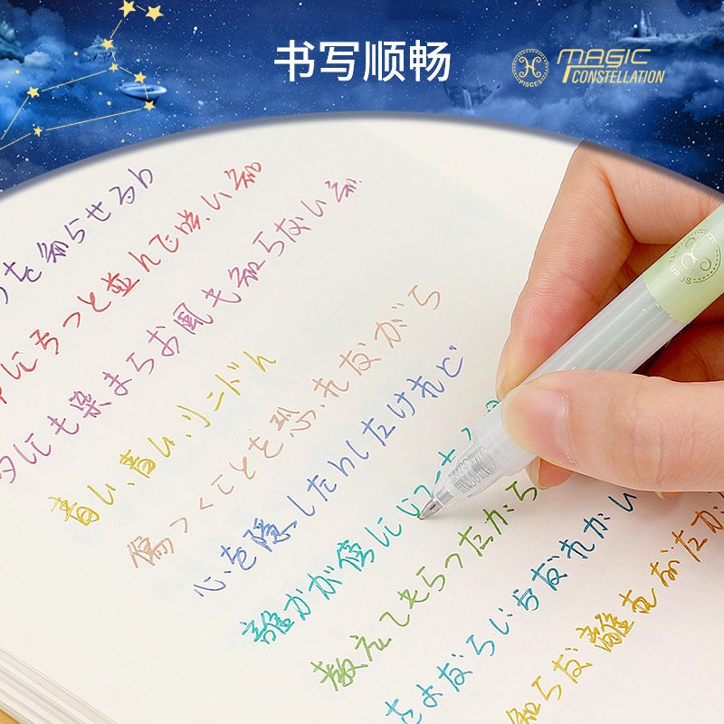 善知十二星座彩色按动中性笔可爱创意0.5mm子弹头学生多色手账笔