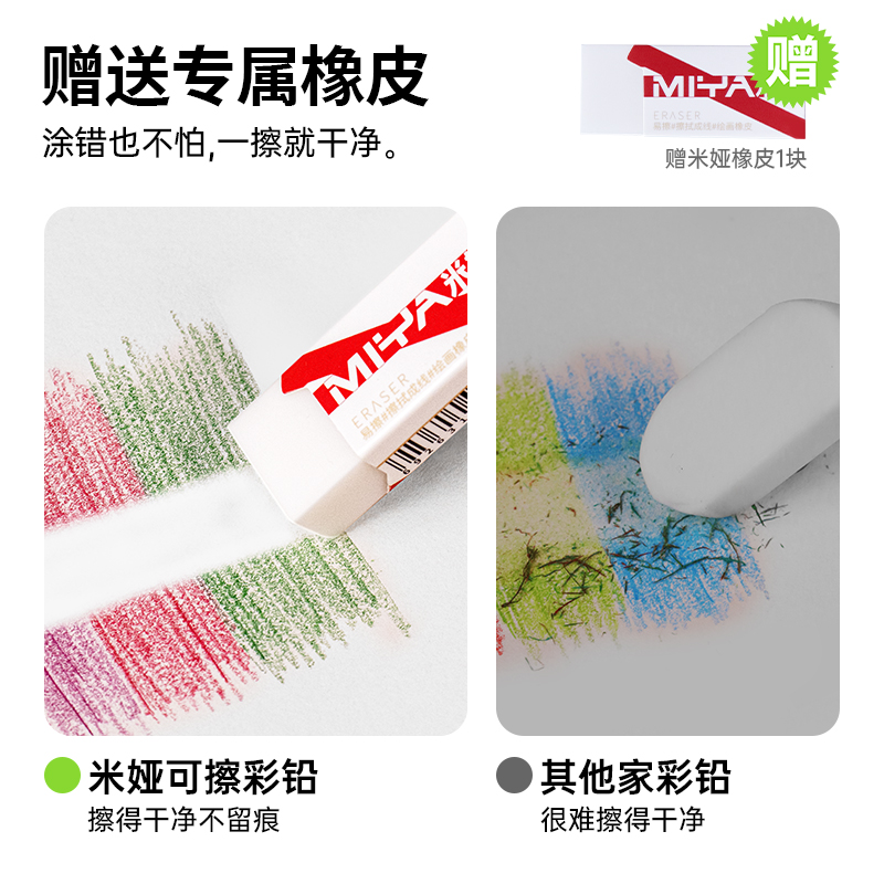 米娅小小鸟米娅可擦彩铅24色36色48色画画专用水溶性美术生小学生划重点涂色答题作业用彩色铅笔不留痕初学者