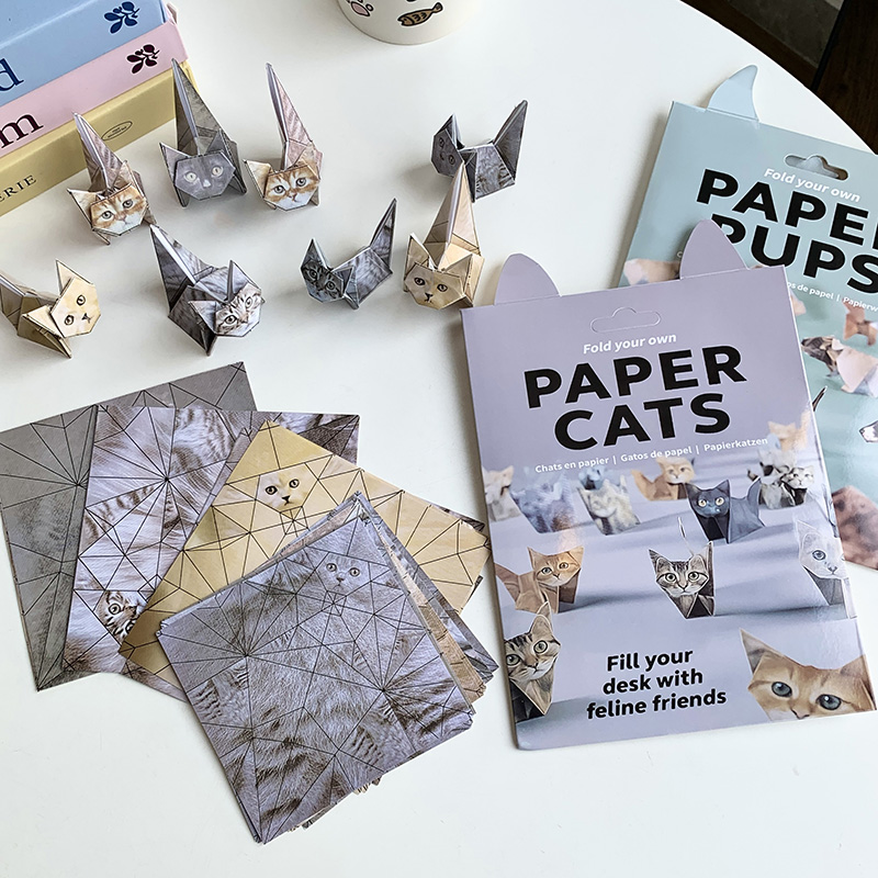 儿童手工制作diy半成品几何折纸恐龙猫和狗折叠动物50张多款小猫