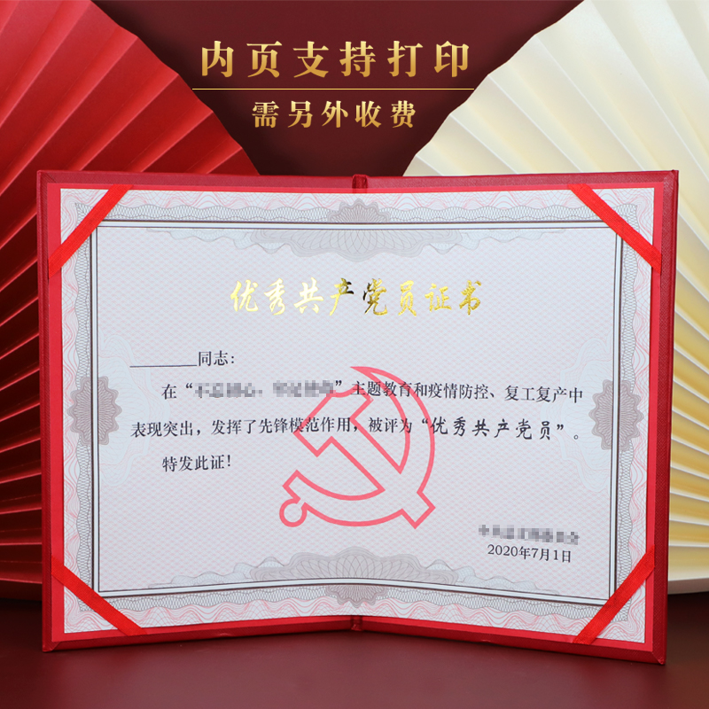 荣誉证书优秀党员证书烫金封面先进工作者外壳党务工作者奖状表彰