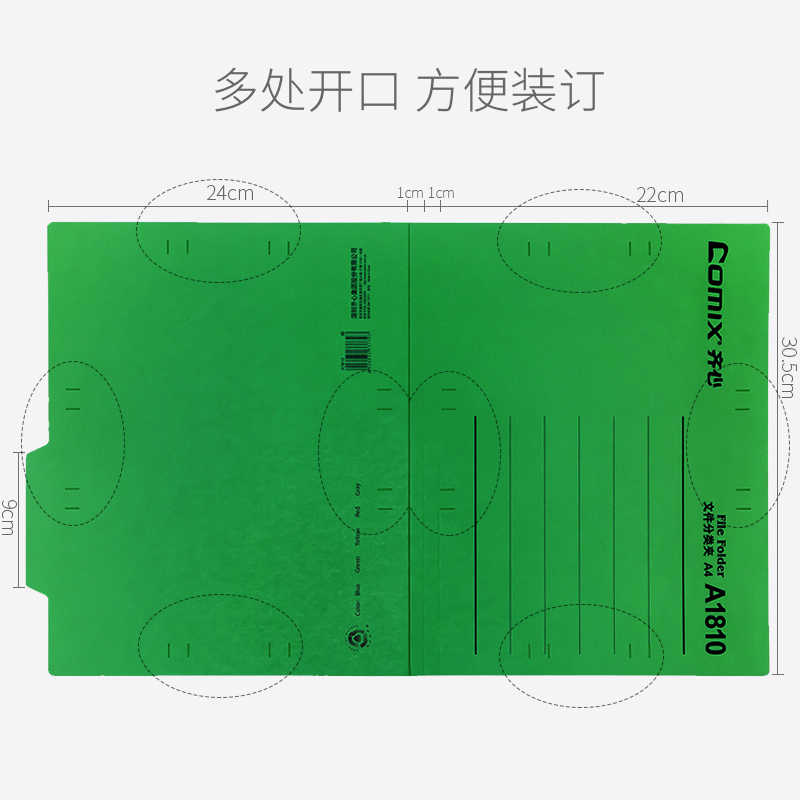 齐心纸质彩色文件夹分类夹整理夹报告夹单片A4二页资料档案夹10个装简约多用途纸快劳夹办公用品A1810
