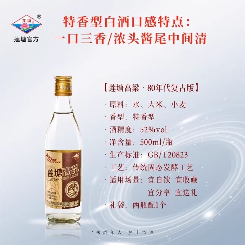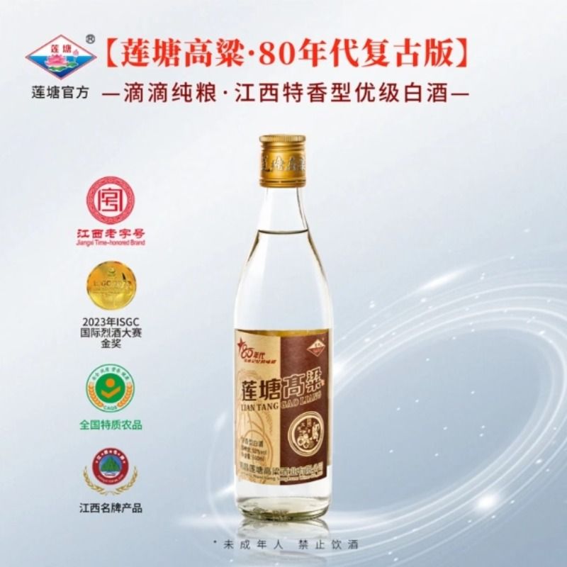 莲塘高粱80年代复古版52度500ml特香型纯粮食固态发酵白酒酒业