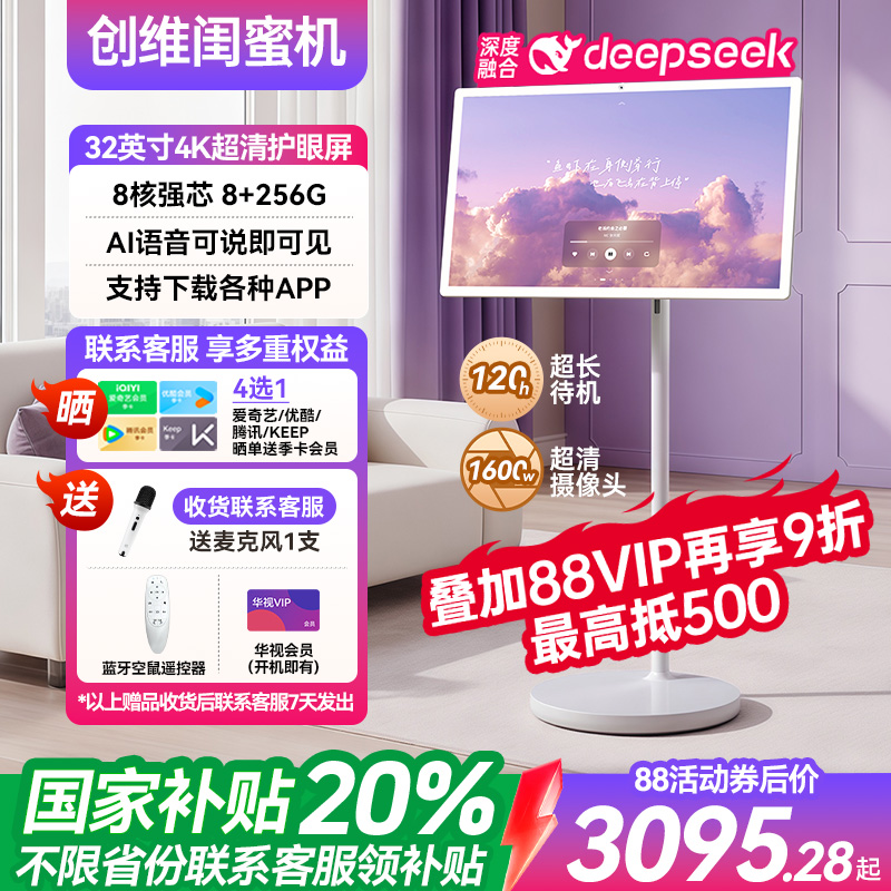 【保价双11】创维酷开AI闺蜜机32英寸可移动电视S20 Pro/Ultra随心屏智慧屏健身投屏大平板语音触控显示屏