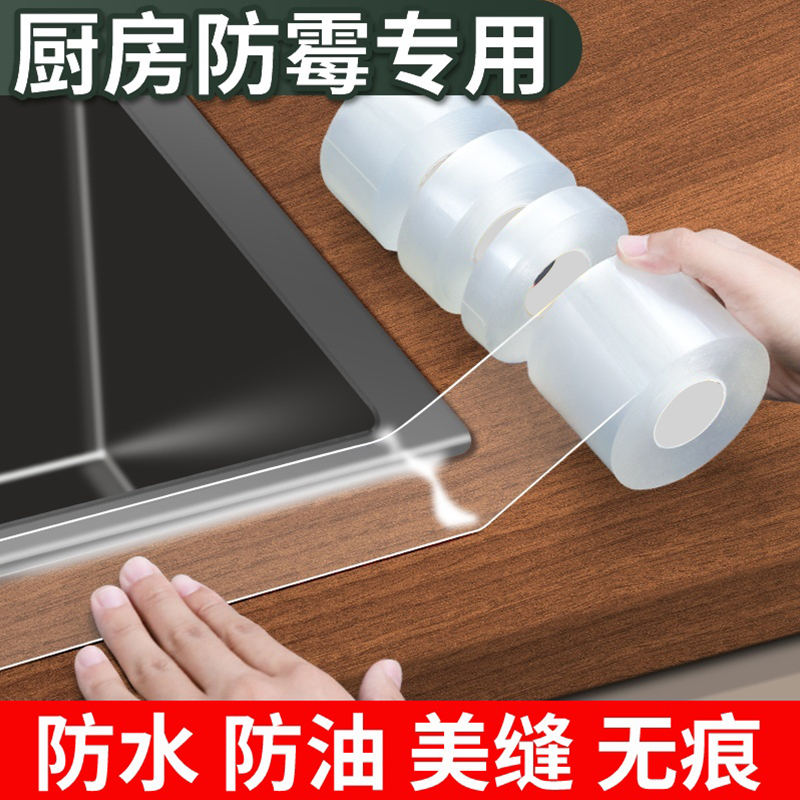 厨房防油贴纸燃气灶封边条灶台水槽边缘缝隙防水防霉防油污贴纸耐高温自粘美缝贴条水池边防水贴铝箔胶带