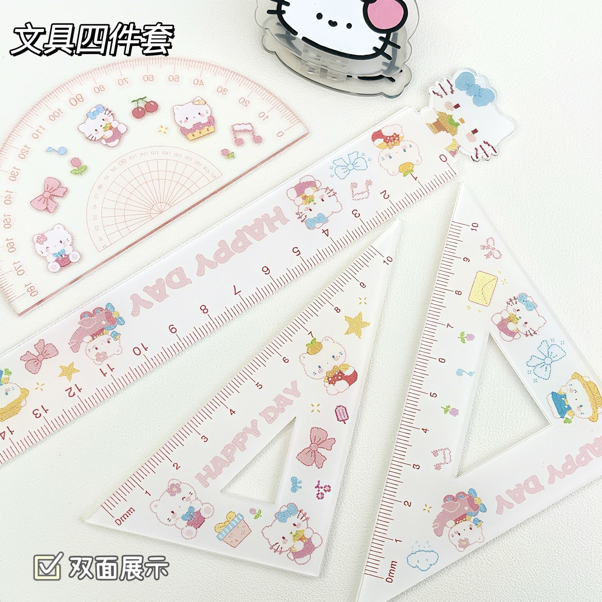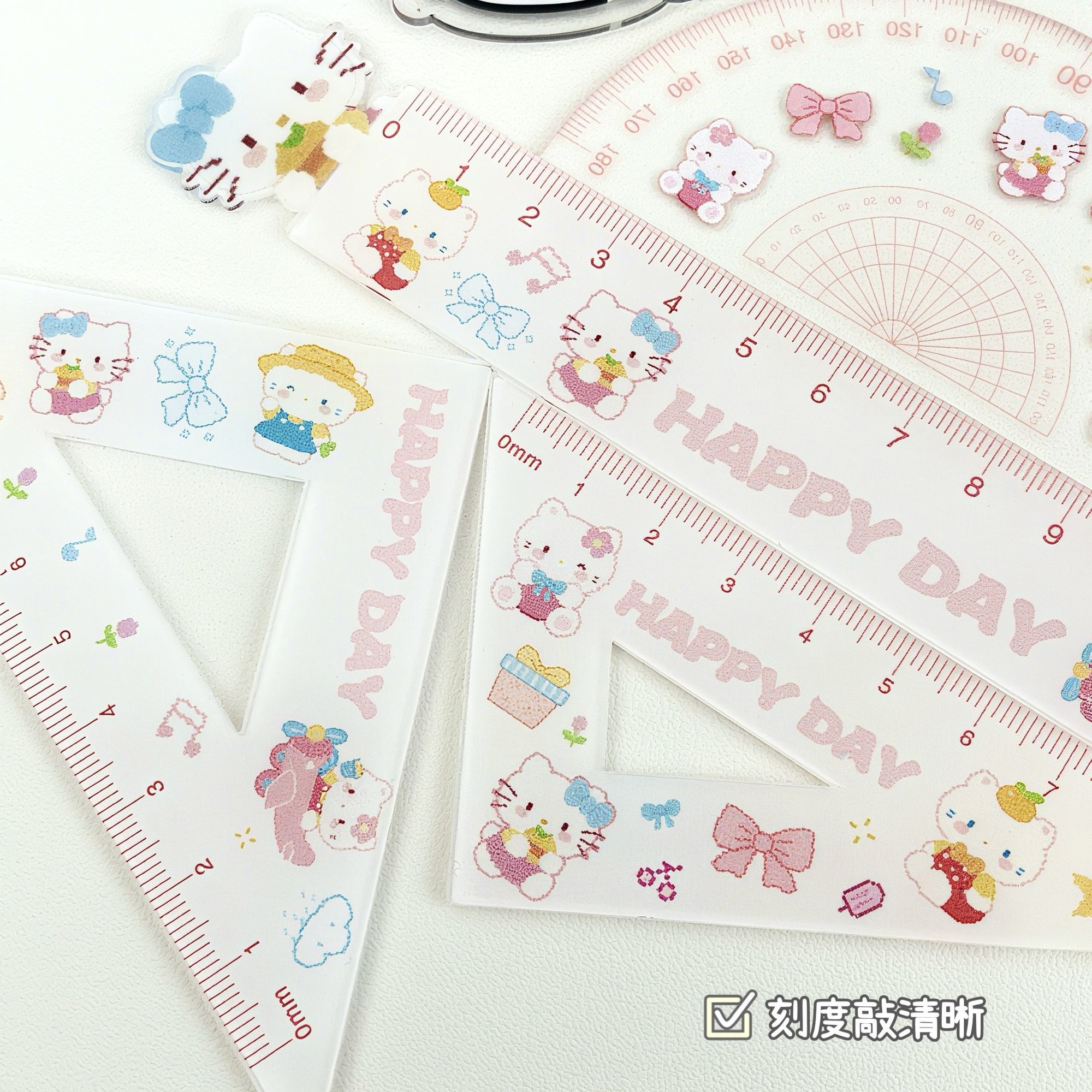 高颜值像素猫咪套尺学生不费眼大数字尺子三角尺直尺量角器套装