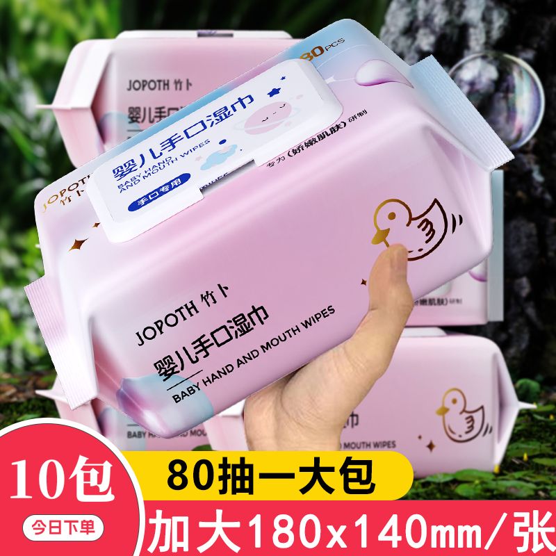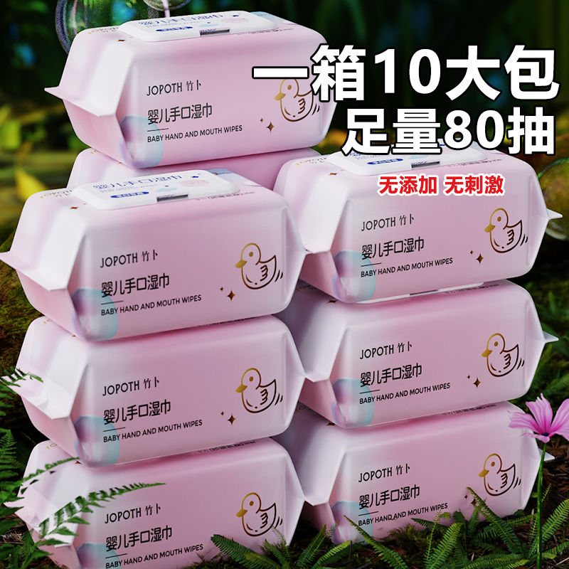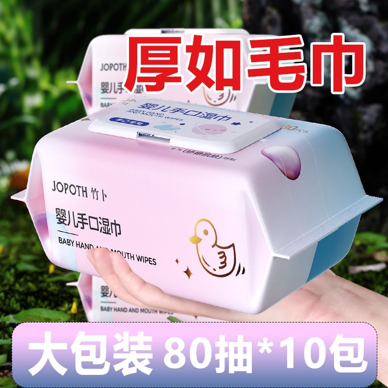 婴幼儿湿巾纸新生手口专用屁宝宝幼儿童80抽家庭实惠大包装湿厕纸