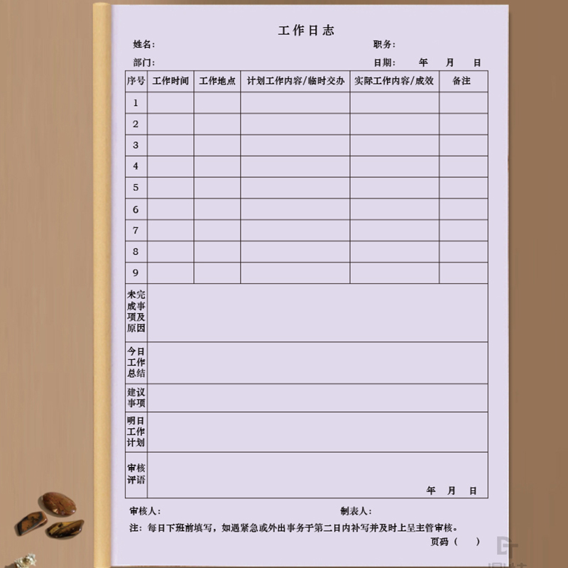 工作日志本店铺管理日志每日要事日记本记录册表日报员工周报表工作总结会议纪要记事本企事业单位每日总结本
