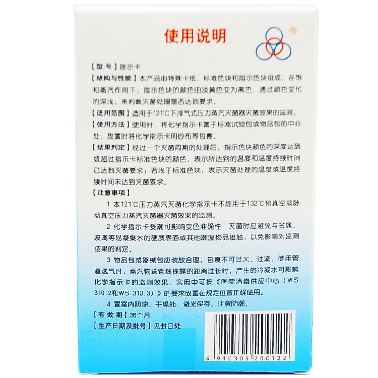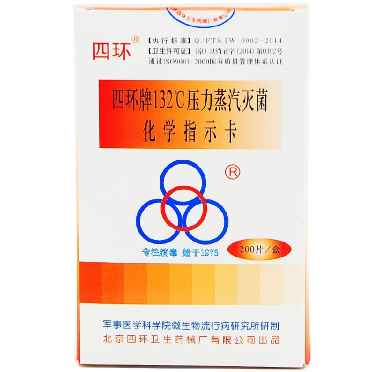 四环 121℃压力蒸汽灭菌化学指示卡 200片/盒 132℃灭菌指示卡效果监测试纸免费开票