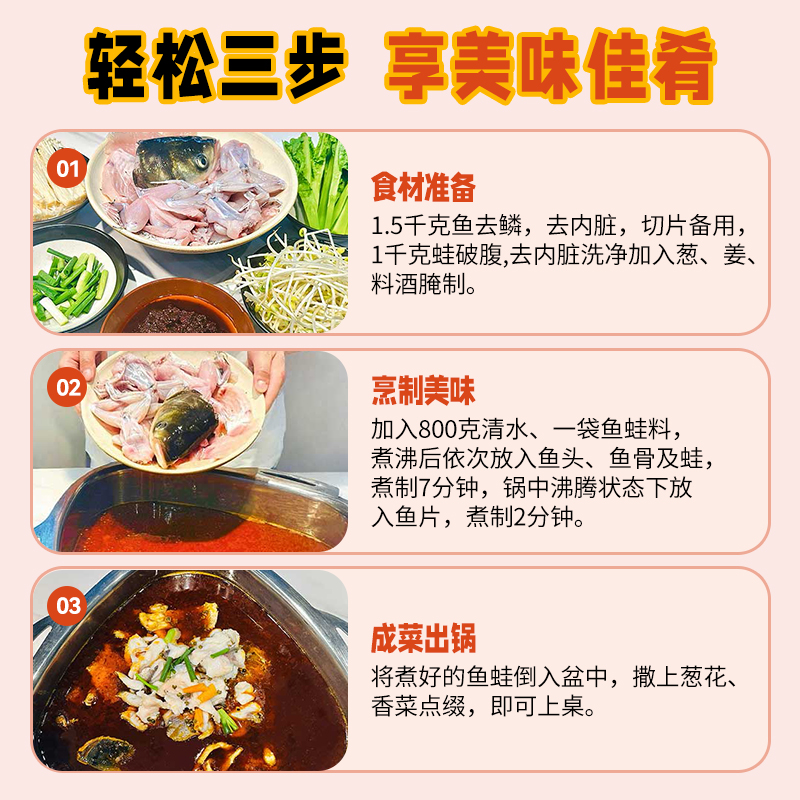 美蛙味绝鱼蛙料200g*3袋美蛙鱼火锅底料鱼头调料麻辣冷锅鱼跳水蛙
