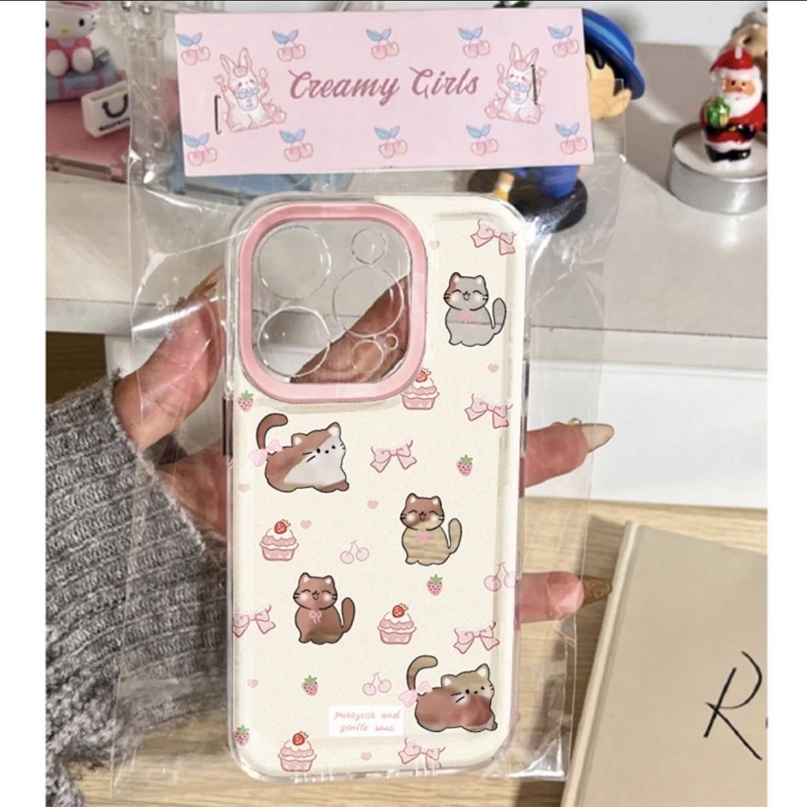 甜点猫咪适用iPhone16苹果14可爱13promax手机壳12卡通11透明镜框