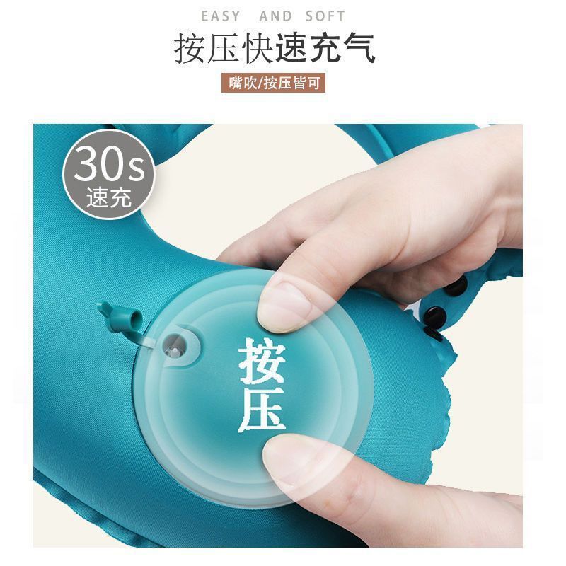 按压式充气便携U型枕长途旅行冲气枕头靠枕加厚颈椎护颈夏季折叠
