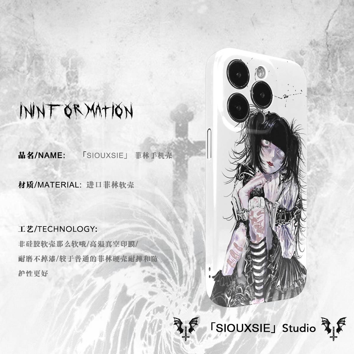 Siouxsie邪典亚文化小众哥特风适用苹果15/14promax手机壳iPhone13个性硬壳12/11菲林xsmax插画新款imd软壳