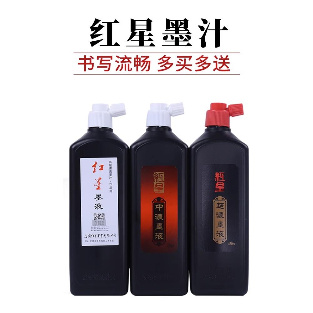 红星墨液墨汁书法专用墨水450cc180cc书法绘画专用墨水玄宗中浓墨液超浓油烟墨国画练习初学书画书法专用初学