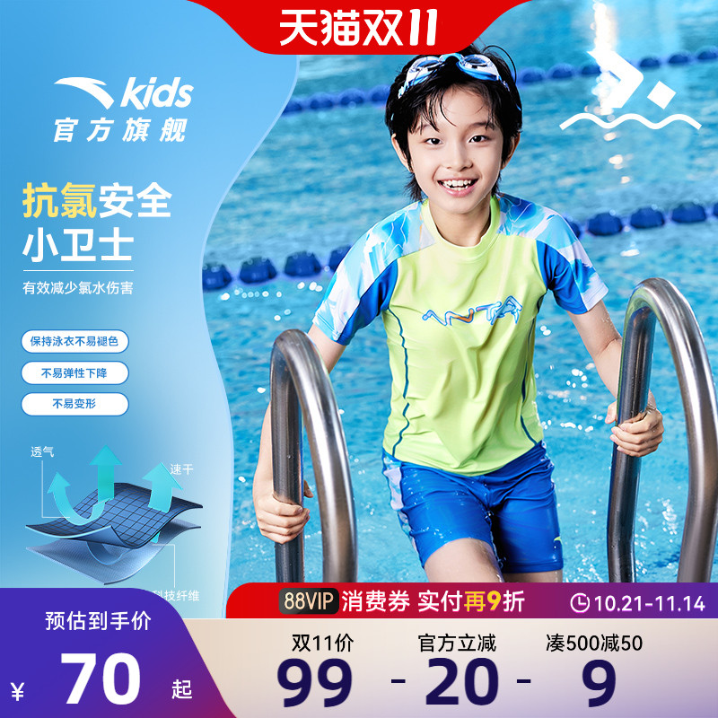 安踏儿童泳衣泡温泉度假男童泳衣女童泳衣分体宝宝泳装裤套装抗菌