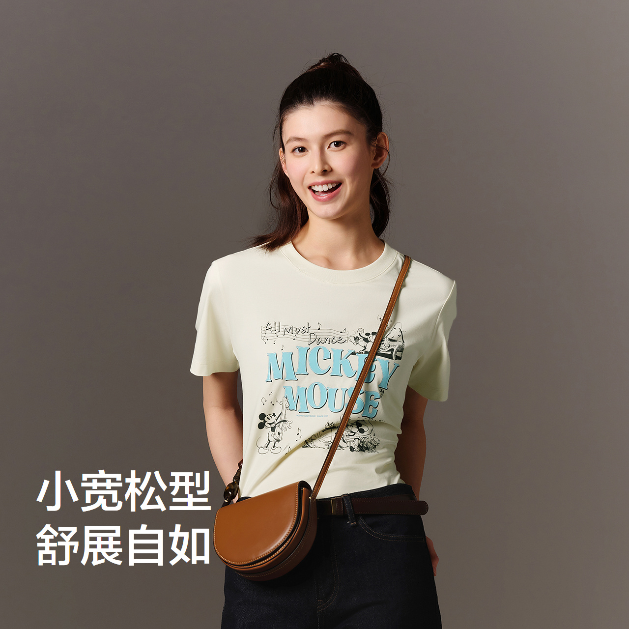 [凉感T]森马迪士尼合作短袖T恤女抗菌2025夏新款宽松刺绣上衣百搭