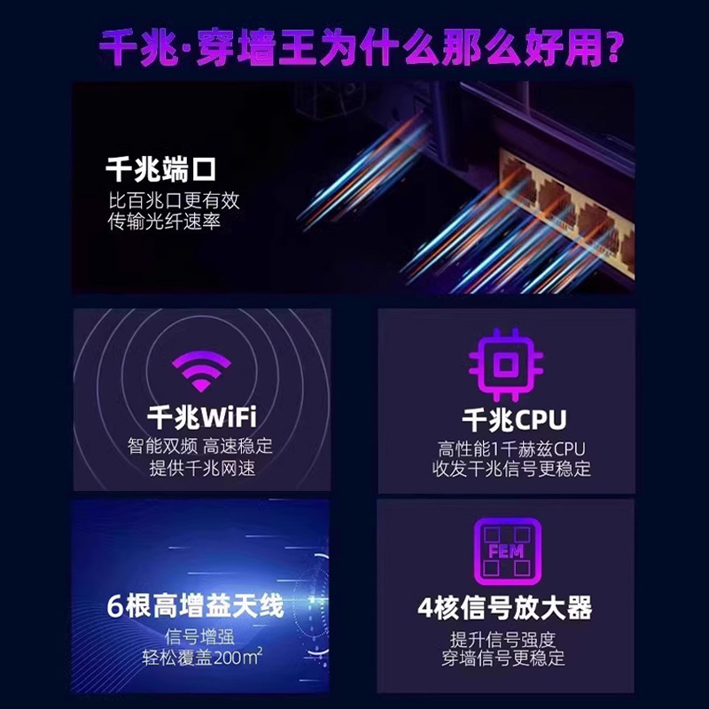 千兆路由器家用高速无线wifi6穿墙王5g双频游戏电竞学生宿舍光猫上网络信号增强扩大大小户型全屋覆盖