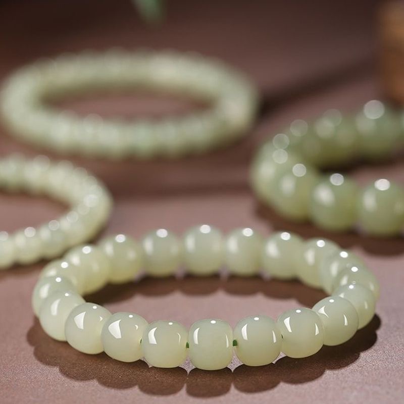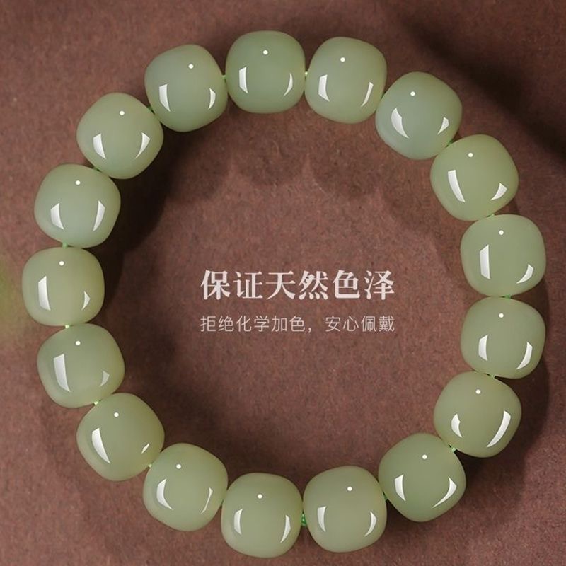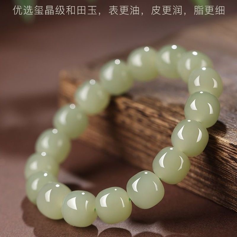 和田玉同款手串老型珠圆珠仿青玉鸭蛋青转运手链浅晴水油青佩戴