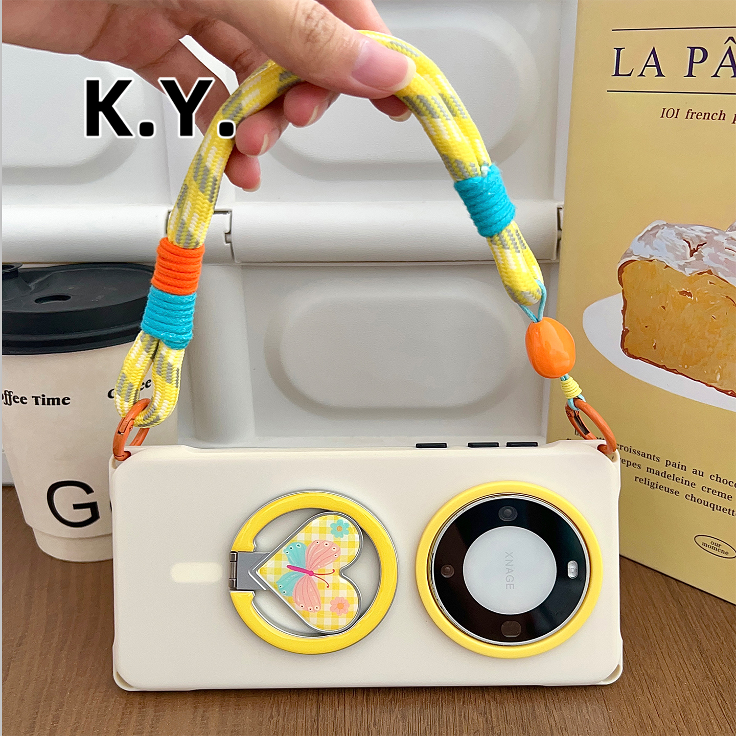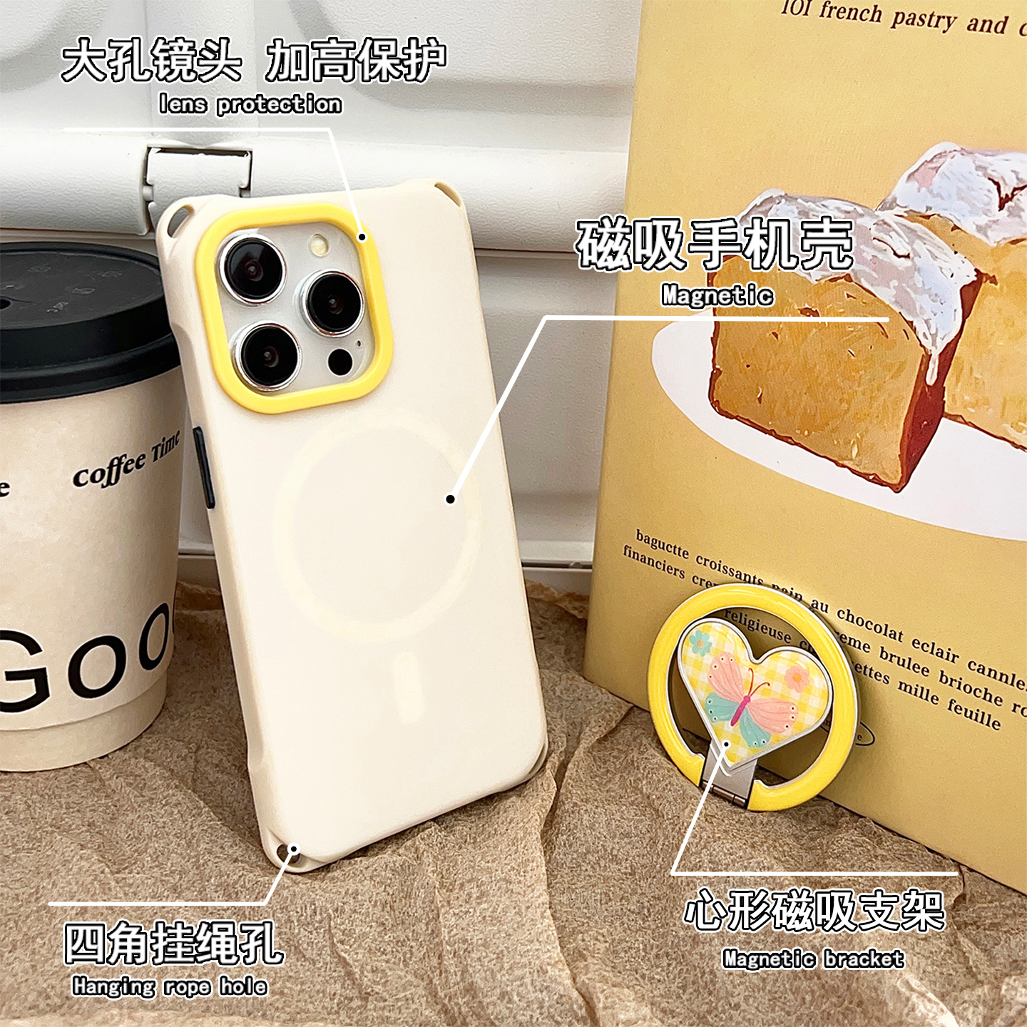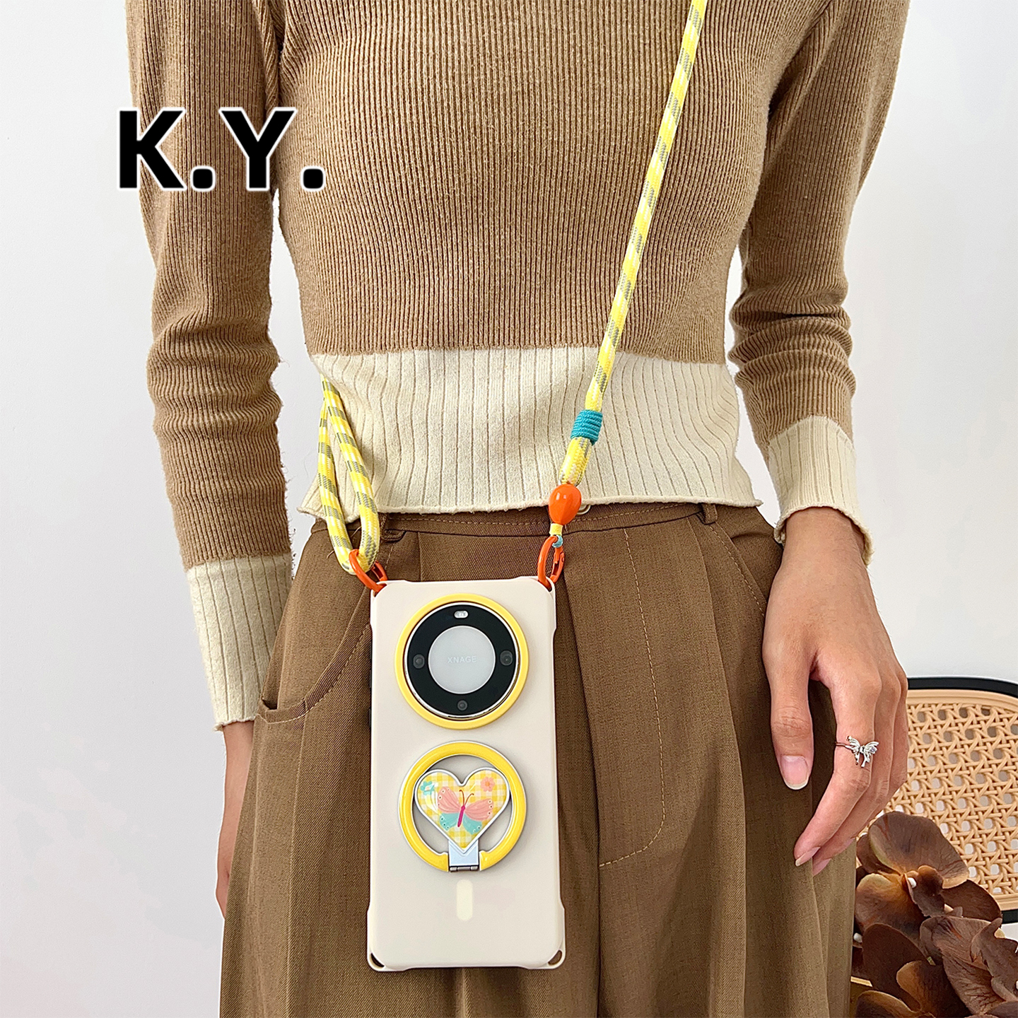 爱心型蝴蝶磁吸支架挂绳斜挎手机壳适用苹果15PROMAX华为mate60/70手腕手拎16PRO四角开孔PURA80PRO防摔硬壳