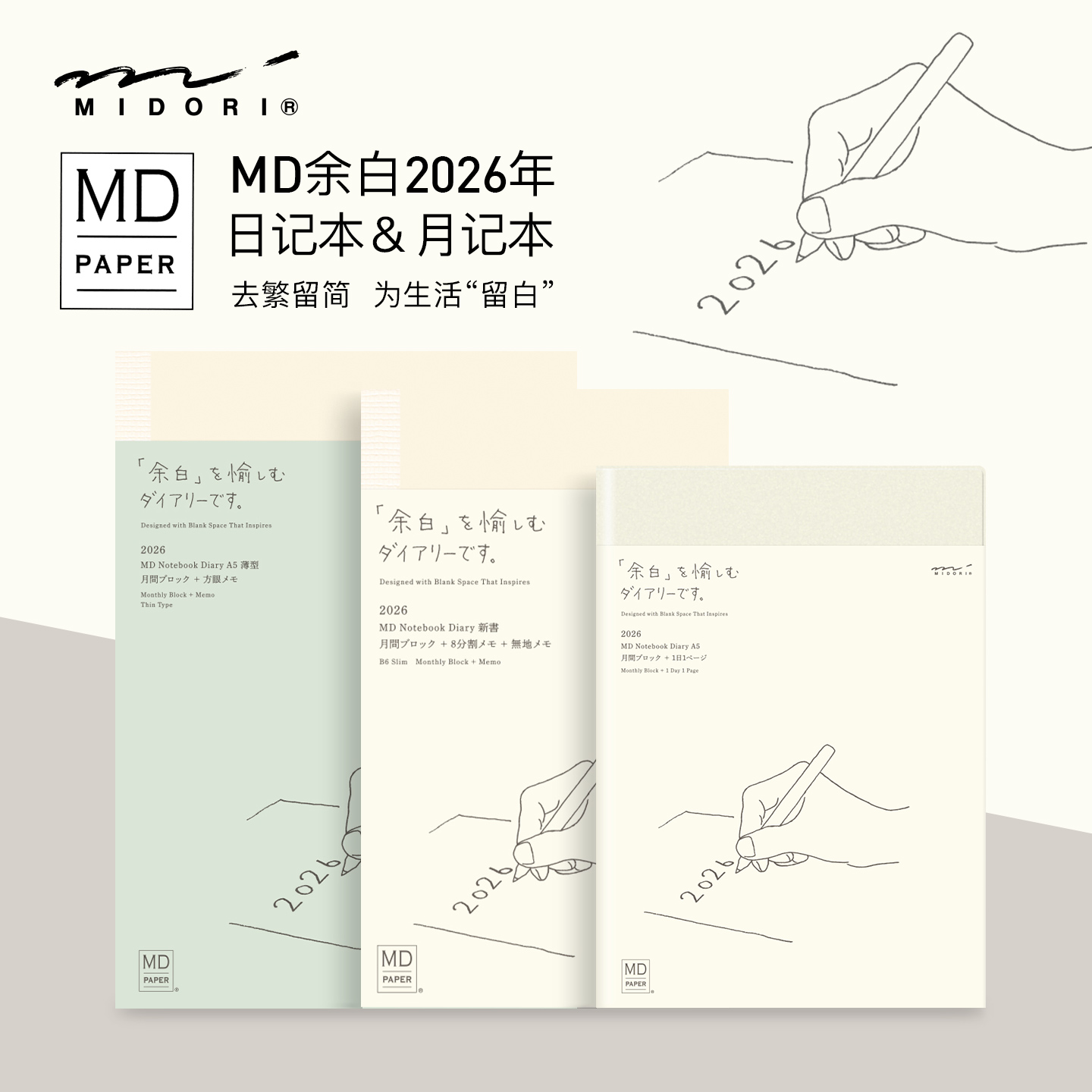 【2026年】日本MIDORI MD余白日记/月记本月计划自填式手帐笔记本